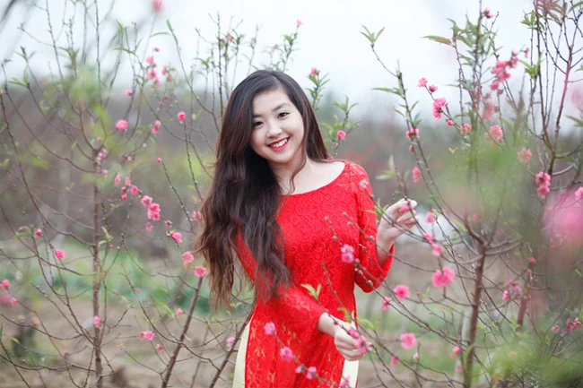 Mẫu trong cảnh xuân thường thì sẽ là các bạn nữ với bộ áo dai truyền thống đẹp mắt. Nhưng ngoài ra chúng ta còn có thể chụp trẻ em, ông ba, cha mẹ, tùy thích.