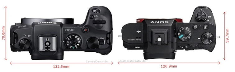 – EOS RP: 132.5 × 85 × 70mm, 485g