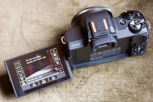 Với ưu điểm nhỏ gọn, các máy ảnh mirrorless được giới Vlogger, YouTuber đặc biệt yêu thích bởi họ có thể sử dụng trong cả ngày dài, thậm chí bằng một tay mà không gây nhức mỏi. Canon M50 cũng vậy, không chỉ gọn nhẹ, màn hình cảm ứng xoay lật linh hoạt còn giúp việc quay video, ngắm chụp tiện lợi ở những góc khó như thấp sát đất hay cao quá đầu. Màn hình có thể lật ngược 180 độ về phía trước nên việc chụp ảnh selfie hay quay Vlog thật sự dễ dàng.