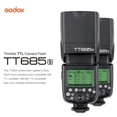 Đèn Flash Godox TT685S for Sony cho công suất đánh đèn rất lớn Gn đạt GN60, tích hợp TTL (Tính năng tự động) và có đầy đủ tính năng như HSS đồng bộ tốc độ cao 1/8000s Sóng vô tuyến Radio 2.4GHz.