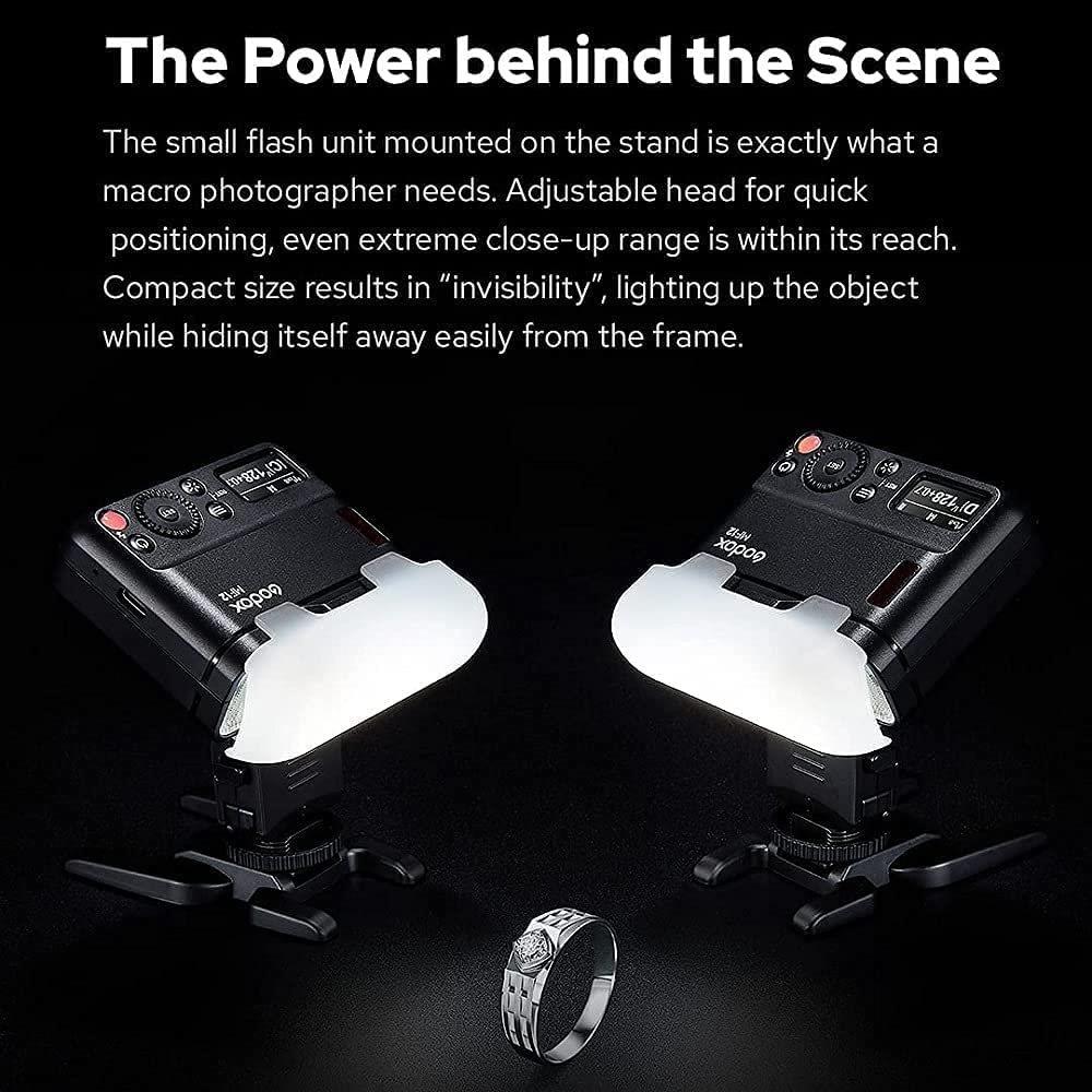 Hãng Godox đã tung ra thị trường siêu phẩm đèn flash chụp Macro Godox MF12 đang được rất nhiều nhiếp ảnh gia lựa chọn tin dùng. Đèn Godox MF12 được sử dụng để chụp ở khoảng cách rất gần, đặc biệt là để chụp ảnh chuyên môn nha khoa. Nhiệt độ màu ổn định. Đèn có thể sử dụng liên tục trong nhiều giờ. Nhiều vòng điều hợp đi kèm để đáp ứng cho nhiều size ống kính khác nhau.
