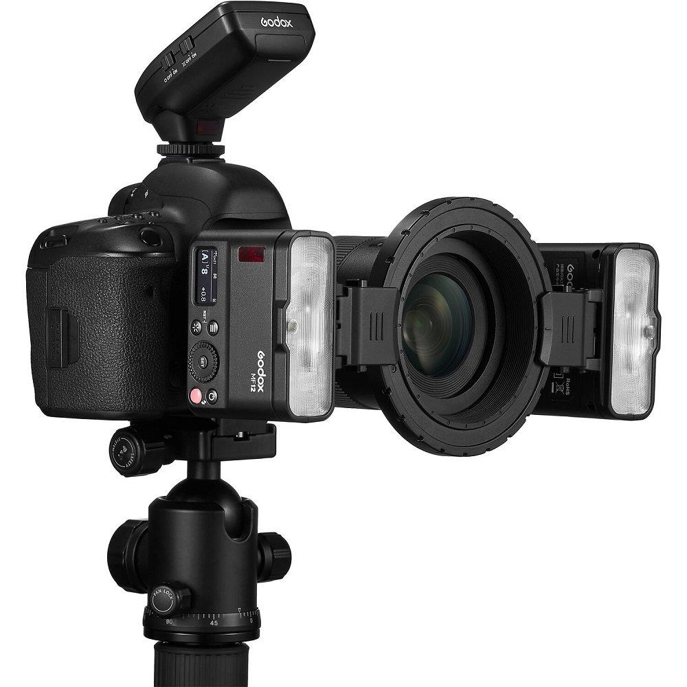 Để tăng tính linh hoạt, đèn Flash có thể được gắn trực tiếp vào ống kính thông qua bộ chuyển đổi tùy chọn, cho phép bạn gắn tối đa sáu đầu đèn Flash MF12. Là một đèn Flash TTL rời, MF12 có thể được điều khiển đồng bộ với Trigger Godox XPro, X1, X2. Tương thích với các máy ảnh thương hiệu chính như Nikon, Sony, Canon, Fujifilm, Olympus và Panasonic.
