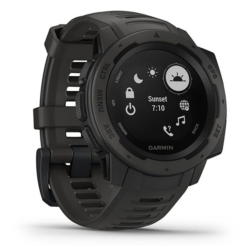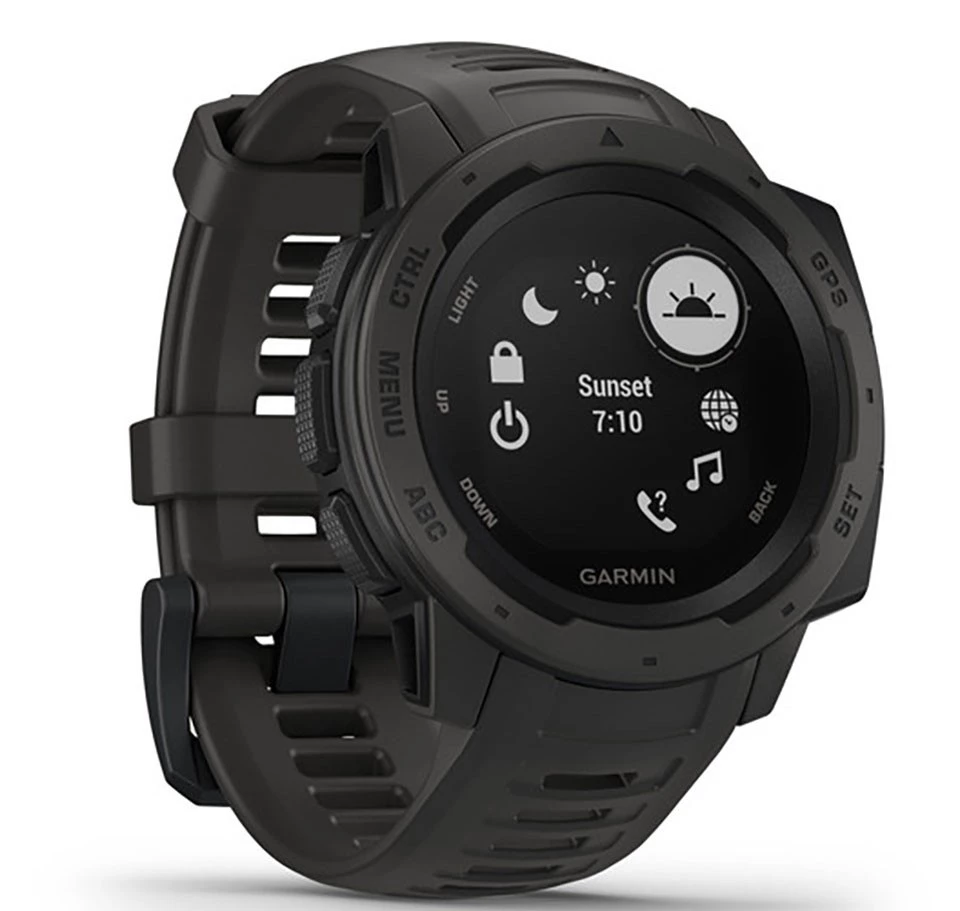Garmin Instinct, GPS, Graphite, SEA_010-02064-14 là chiếc đồng hồ thông minh thể thao đầu tiên được Garmin xây dựng theo tiêu chuẩn quân đội 810G của Hoa Kỳ về khả năng chịu nhiệt, chống sốc và kháng nước ở độ sâu tối đa 100 mét. Nếu bạn đã đam mê dòng Garmin Fenix 5 Plus nhưng e ngại chi phí quá cao thì đây là cơ hội cho bạn sở hữu một chiếc đồng hồ Garmin cao cấp nhưng rẻ hơn với các tính năng hỗ trợ bộ môn ngoài trời là chủ yếu.