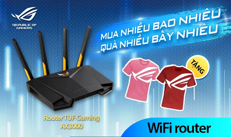 Mua bộ định tuyến Wi-Fi Asus Tuf Gaming AX3000 nhận ngay 1 áo thun ROG phiên bản giới hạn