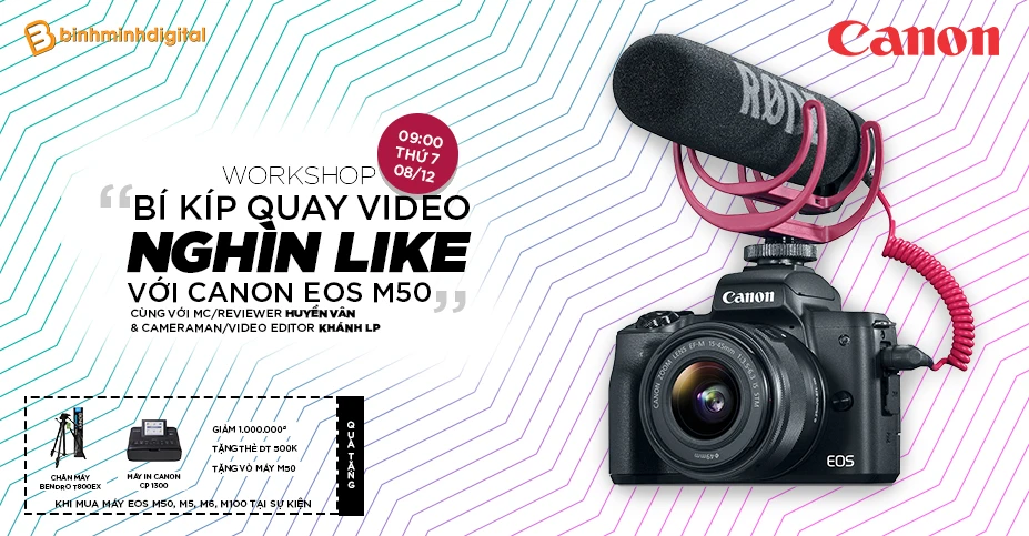 Hãng #CANON phối hợp cùng #Bình #Minh #Digital tổ chức Workshop với chủ đề “Bí kíp quay video clip “nghìn like” với máy ảnh Canon“ 🎁 🎁 Khách hàng khi Tham dự Workshop khi mua máy ảnh Canon EOS M50, Canon EOS M5, Canon EOS M6, Canon EOS M100 sẽ được nhận những quà tặng như sau:. . .