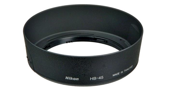 – Lens Hood Nikon HB – 45 giúp ngăn không cho ánh sáng từ 2 bên chiếu vào những thấu kính ngoài cùng. Nếu không ngăn ánh sáng từ những nguồn này, ảnh sẽ bị vết mờ (flare) và giảm độ tương phản (contrast). Khi sử dụng loa che nắng, ảnh sẽ cho màu sắc thực hơn (richer color) và có độ sâu hơn (deeper saturation).