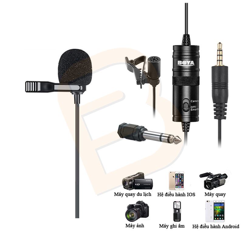 Boya By-M1 là một microphone lavalier đa hướng, hoàn hảo cho việc sử dụng video, được thiết kế cho Điện thoại thông minh, DSLR, Máy quay phim, Máy ghi âm, PC, v.v. Micrô lavalier có mẫu pickup Omni, với phạm vi phủ sóng 360 độ đầy đủ. Cáp tích hợp 6 mét (20 ”) với phích cắm vàng 4 cực 3,5 mm, có thể kết nối trực tiếp với Điện thoại thông minh, hầu hết các camera.
