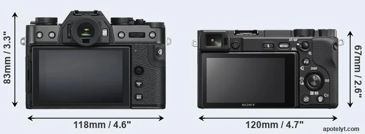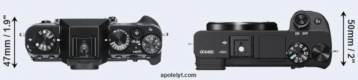 Máy ảnh Fujifilm X-T30 nhỏ hơn về chiều rộng, nhẹ hơn, nhưng cao hơn thấy rõ. Một điểm khác biệt khá liên quan nữa là a6400 có grip nhô rõ ở mặt trước.