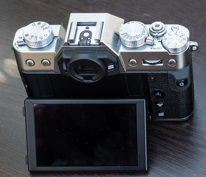 Fujifilm X-T30 đặt kính ngắm ở chính giữa mặt trên của máy, tạo nên vẻ ngoài tương tự một chiếc máy ảnh SLR nhỏ gọn. Trên Sony a6400, kính ngắm lại đặt ở phía bên trái, cho vẻ ngoài phẳng hơn một chút.