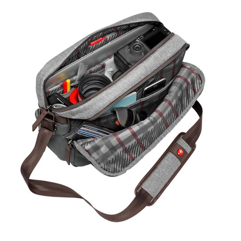 Túi máy ảnh Manfrotto Lifestyle Windsor Reporter với sức chứa gồm máy ảnh DSLR, Mirrorless, 2- 3 ống kính, máy tính bảng và các phụ kiện.