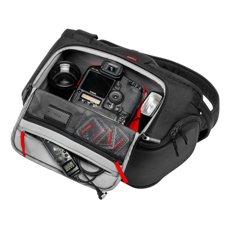 Manfrotto Sling 50 (MB MP-S-50BB) có sức chứa cho 1 máy ảnh DSLR gắn kèm với ống kính 70-200 f2.8 cùng 2-3 ống kính rời, các ngăn chứa phụ kiện, table. Bên cạnh đó, chiếc túi đựng máy ảnh này còn có vị trí để bạn gắn kèm một chân máy, rất linh hoạt, bạn dễ dàng mang theo hầu như tất cả linh kiện cần thiết cho buổi chụp ảnh.